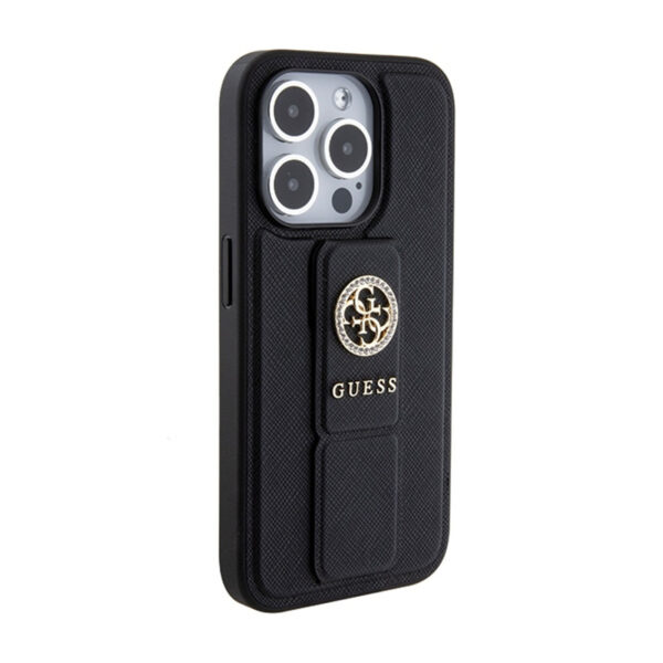 Guess Grip Stand 4G Saffiano Strass Logo – Apple iPhone 15 Pro Case black