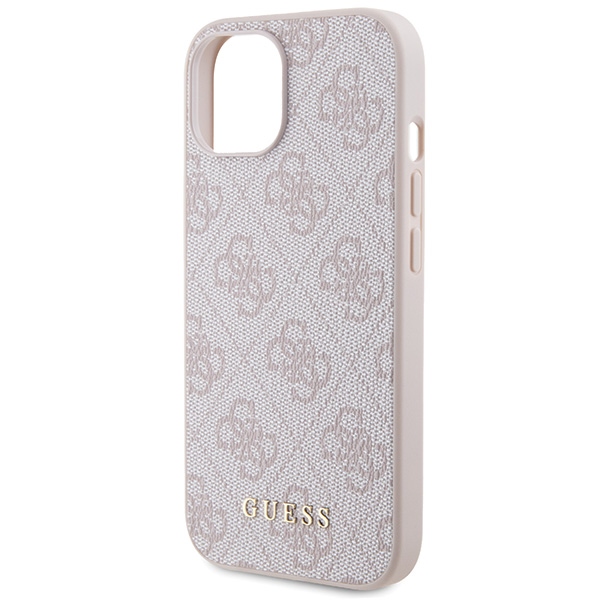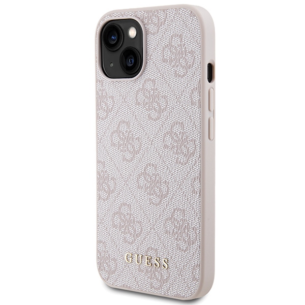 Guess GUHCP15SG4GFPI Apple iPhone 15 / 14 / 13 6.1″ rožinės spalvos hard dėklas 4G Metal Gold Logo