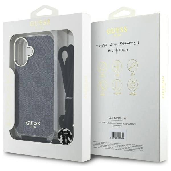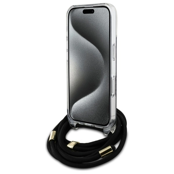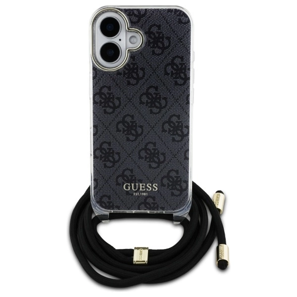 Guess GUHCP16SHC4SEK Apple iPhone 16 6.1" dėklas telefonui juodos spalvos Crossbody Cord 4G Print