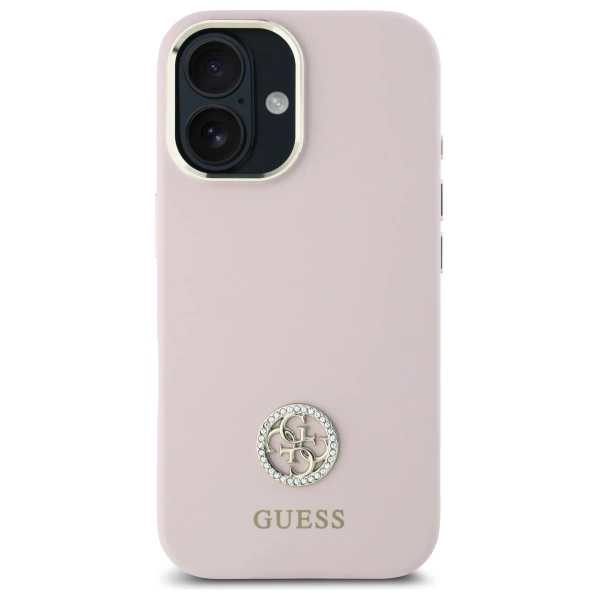 Guess GUHCP16SM4DGPP Apple iPhone 16 6.1" dėklas telefonui rožinės spalvos Silikoninis Logo Strass 4G