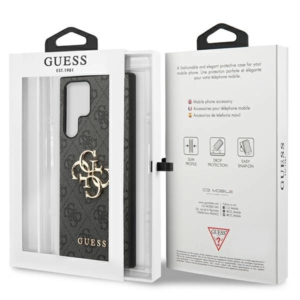 Guess GUHCS23L4GMGGR Samsung Galaxy S23 Ultra S918 dėklas telefonui pilkos spalvos 4G Big Metal Logo