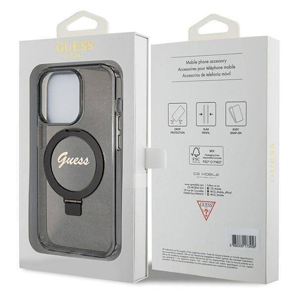 Guess GUHMP13LHRSGSK iPhone 13 Pro / 13 6.1″ juodos spalvos dėklas Ring Stand Script Glitter MagSafe
