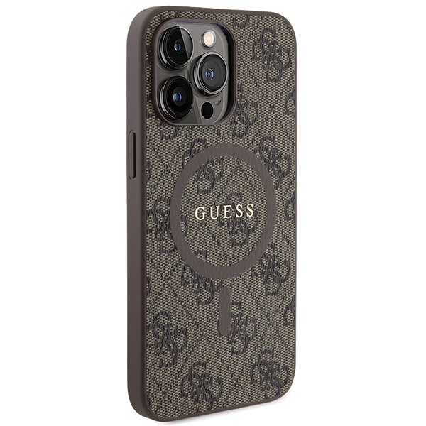Guess GUHMP14LG4GFRW Apple iPhone 14 Pro 6.1″ rudos spalvos dėklas 4G Collection Leather Metal Logo MagSa
