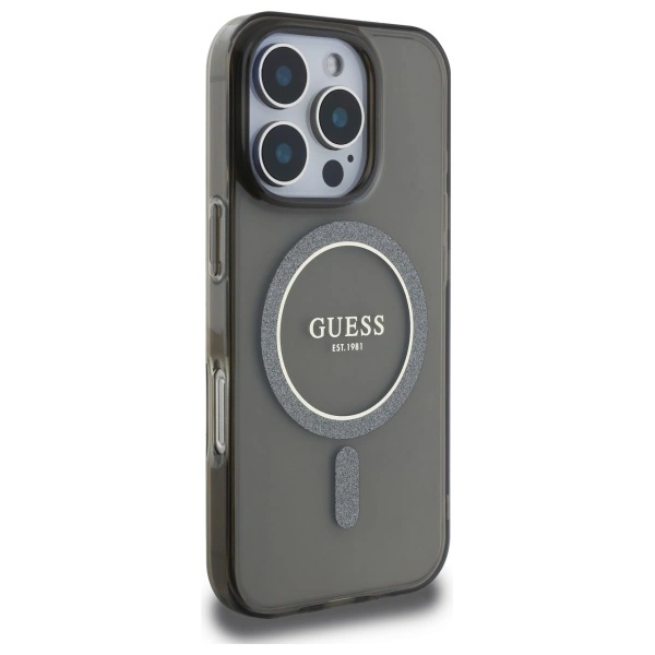 Guess GUHMP16LHFGEREK Apple iPhone 16 Pro 6.3" dėklas telefonui juodos spalvos IML Glitter Circle MagSafe