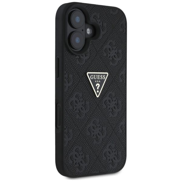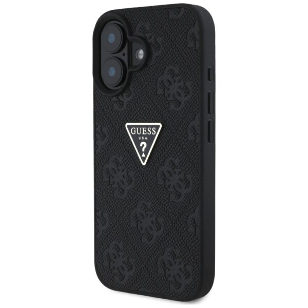 Guess Hot Stamp 4G Pattern Triangle Metal Logo Apple iPhone 16 dėklas telefonui juodos spalvos