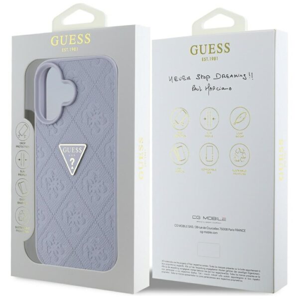 Guess Hot Stamp 4G Pattern Triangle Metal Logo Apple iPhone 16 dėklas telefonui violetinės spalvos