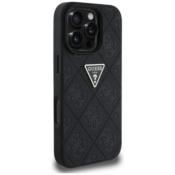 Guess Hot Stamp 4G Pattern Triangle Metal Logo Apple iPhone 16 Pro dėklas telefonui juodos spalvos