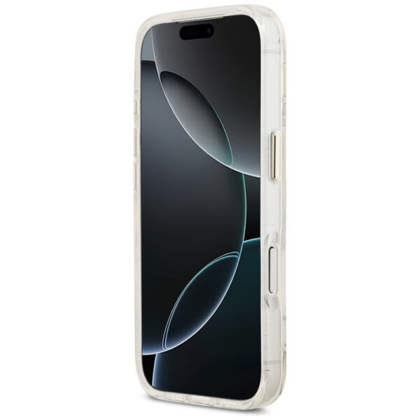 Guess IML Glitter Flowers Triangle MagSafe dėklas skirtas Apple iPhone 17 Pro Max baltos spalvos