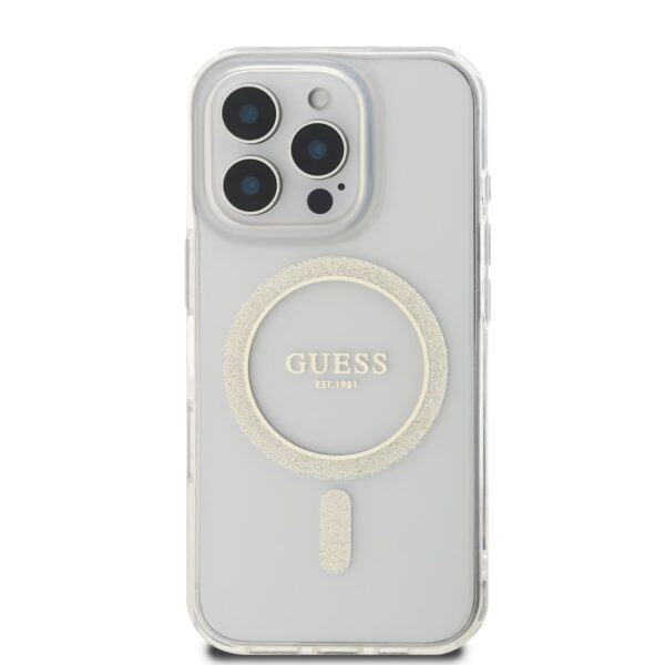 Guess IML Glitter Ring MagSafe Apple iPhone 16 Pro Max dėklas telefonui skaidrus