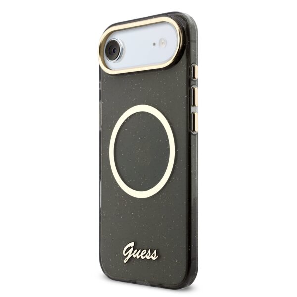 Guess IML Glitter Script Strap MagSafe dėklas skirtas iPhone Air Black