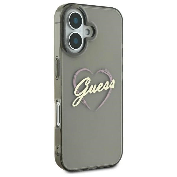 Guess IML Heart Apple iPhone 16 – dėklas telefonui juodos spalvos