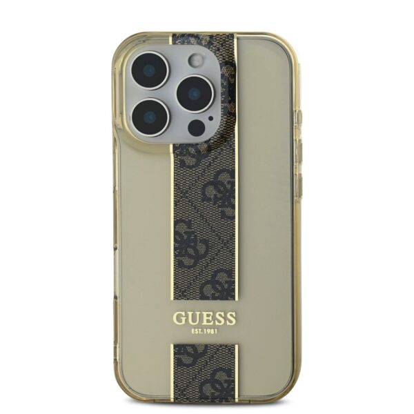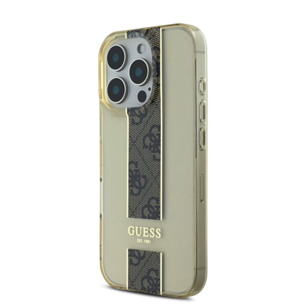 Guess IML Middle 4G Stripe Apple iPhone 16 Pro dėklas telefonui rudos spalvos