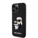 Guess Liquid Silicone 4G Strass Metal Logo dėklas telefonui Apple iPhone 15 Pro juodos spalvos