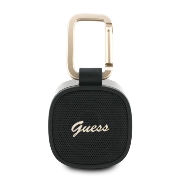 Guess MagSafe Bluetooth Speaker – a compact and modern speaker that allows you to enjoy your favorite music anywhere and anytime. This elegant wireless speaker with magnetic attachment offers practical use at home, on the go and during leisure activities. Thanks to the compatible magnetic system, you can easily attach it to your MagSafe-enabled phone and always have your music at hand. The speaker supports Bluetooth version 5.3, which ensures a fast and stable connection up to 10 meters away. 3W power with a frequency range of 20Hz–20kHz and an impedance of 4 ohms delivers surprisingly clear sound despite its small dimensions. A high-quality 40mm driver will provide clear highs and deeper bass. Thanks to the built-in 300mAh battery, you can enjoy several hours of music. Charging is fast and convenient via a modern USB-C connector, in about 2 hours. The package includes a practical carabiner that allows easy attachment and carrying. Guess MagSafe Bluetooth Speaker Black is the ideal companion for every day – stylish, portable and reliable. Features: - Compact and elegant Bluetooth speaker with magnetic attachment. - Bluetooth V5.3 support for stable and fast connection. - 3W speaker power with high-quality 40mm driver - Frequency range 20Hz–20kHz, impedance 4ohm - Transmission distance up to 10 m - Built-in 300mAh battery - Charging time approx. 2 hours via USB-C. - Input: DC 5V/1A - Compact dimensions: 66 × 56 × 41 mm - Practical carabiner for easy carrying
