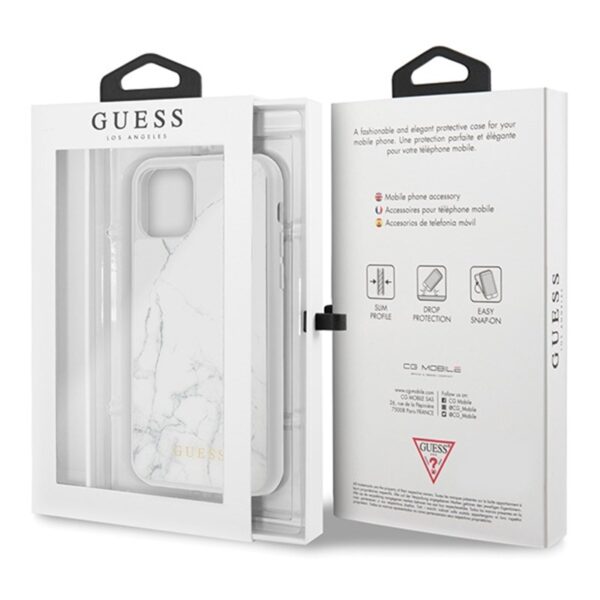 Guess Marble Tempered Glass Hardcase – dėklas skirtas Apple iPhone 11 Pro white