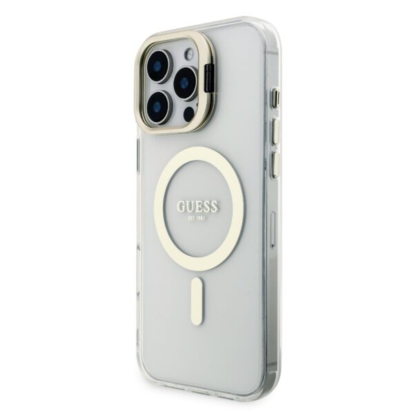 Guess PC/TPU Electroplated Stand Camera Frame MagSafe dėklas with Interchangeable Backgrounds skirtas Apple iPhone 16 Pro Max