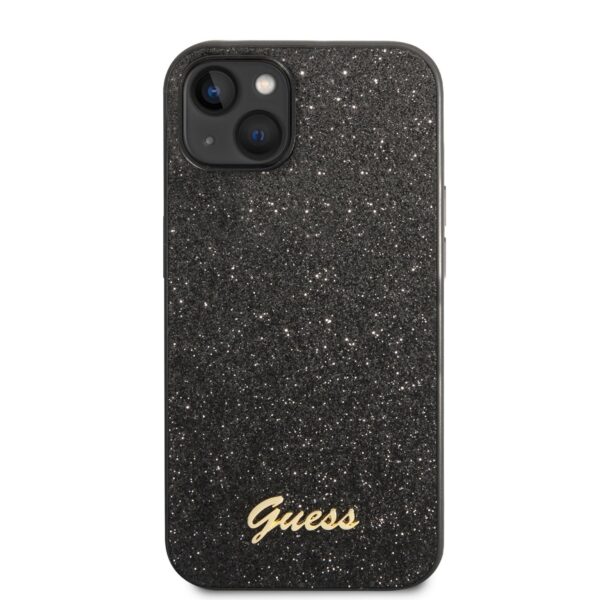 Guess PC/TPU Glitter Flakes Metal Logo Apple iPhone 14 dėklas telefonui juodos spalvos