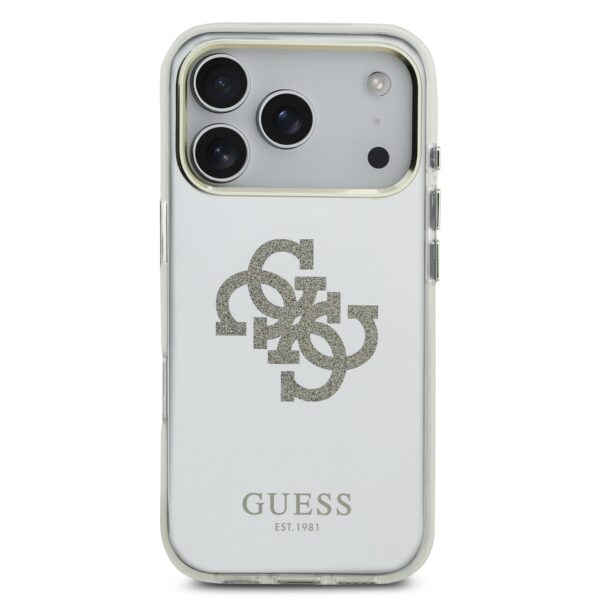 Guess PC/TPU Mirror 4G Glitter Logo MagSafe dėklas skirtas Apple iPhone 17 Pro Gold