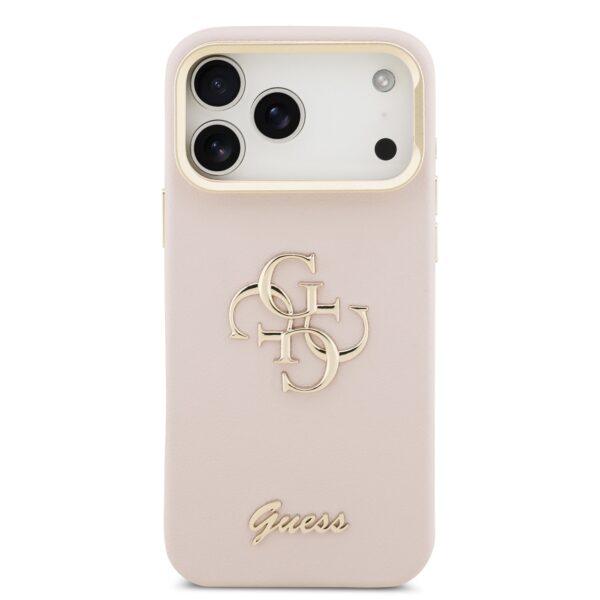 Guess PU Grained 4G Logo Stand Camera Frame dėklas skirtas Apple iPhone 17 Pro Max rožinės spalvos