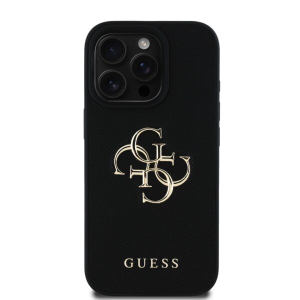 Guess PU Grained 4G Metal Logo dėkals tavo Apple iPhone 16 Pro juodos spalvos