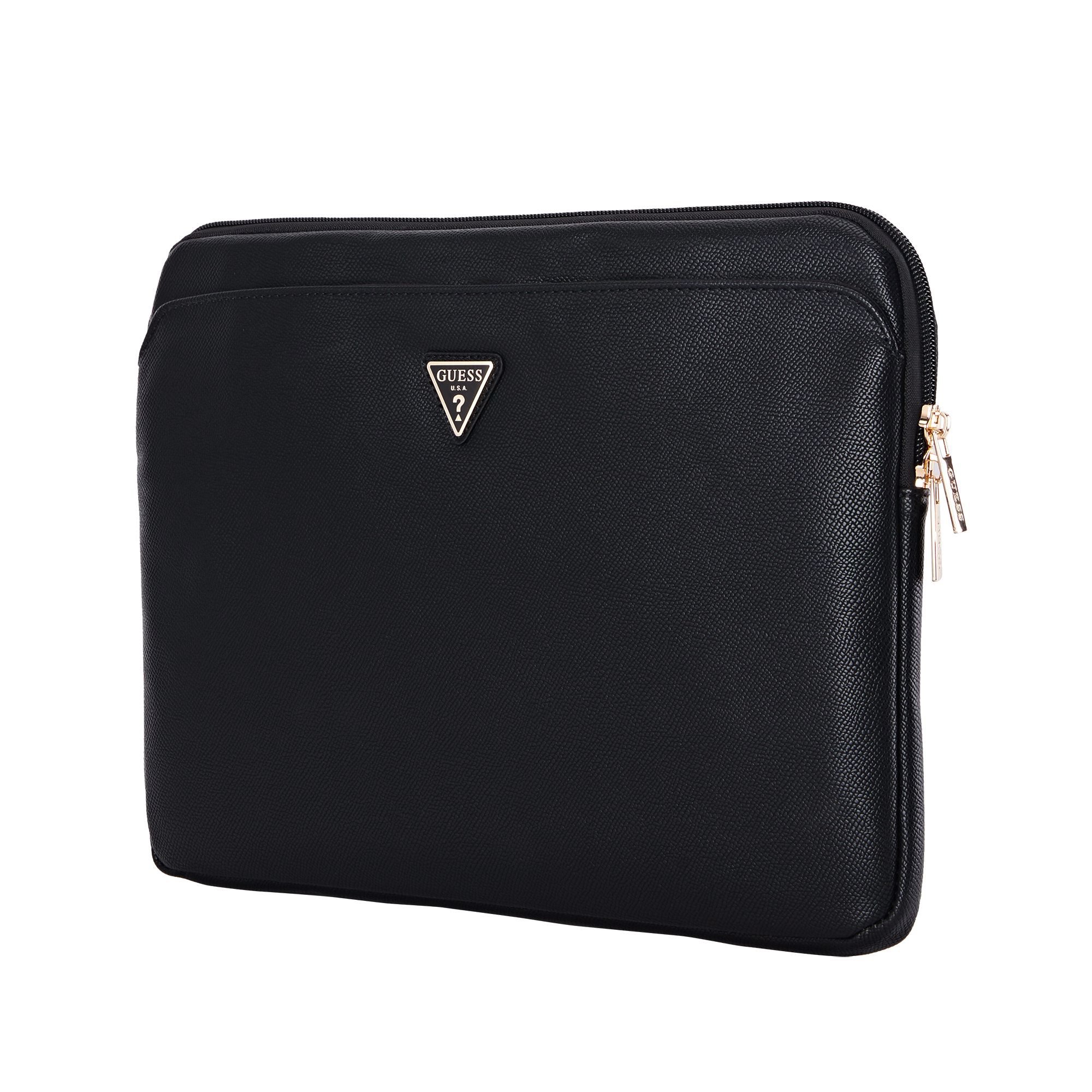 Guess PU Grained Triangle Logo is the perfect laptop case for laptops with a screen size of up to 14". This elegant laptop case from Guess is made of high-quality PU material, which ensures durability and a stylish look. The interior is reinforced with a pleasant insole that is soft to the touch, providing extra protection for your laptop. The elegant design with a grainy leather texture and Guess triangle logo gives the case a modern and luxurious look. The practical zipper closure makes it easy to handle and carry. Your laptop will be perfectly protected from surface damage, dirt, scratches and minor falls. This case is therefore an ideal choice for those looking for a combination of style and functionality. Key features: - Original GUESS - Laptop case with a diagonal of 14" - Made of PU material - Main zipper pocket - Clean and luxurious design