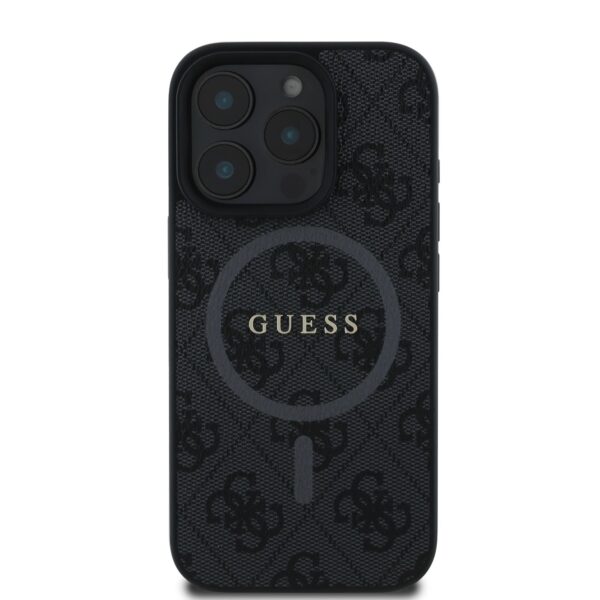 Guess PU Leather 4G Colored Ring MagSafe Apple iPhone 16 Pro Max dėklas telefonui juodos spalvos