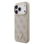 Guess PU Leather 4G Strass Triangle Logo Gold Frame MagSafe dėklas skirtas Apple iPhone 17 Pro rudos spalvos