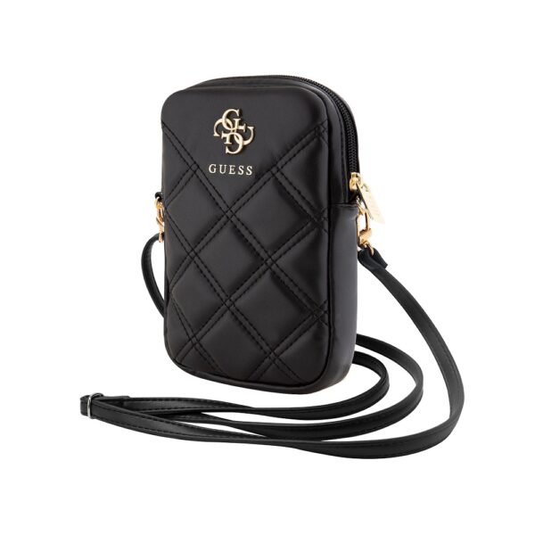 Guess PU Quilted 4G Metal Logo Wallet Phone Bag Zipper juodos spalvos