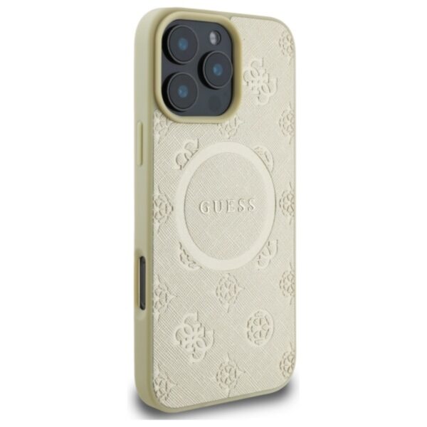Guess Saffiano Peony Classic Logo MagSafe – dėklas skirtas Apple iPhone 16 Pro Max gold