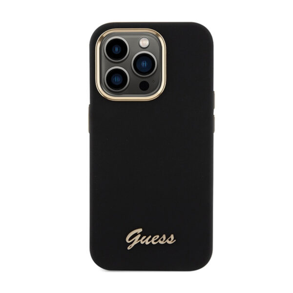 Guess Silicone Script Metal Logo & Frame – Apple iPhone 15 Pro Max Case black