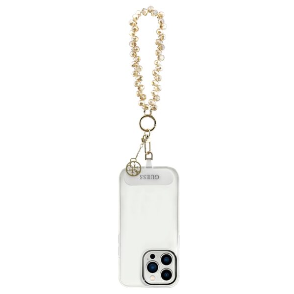 The Guess Universal Wrist Strap 4G Crystals Charm is the ideal accessory for those looking for a combination of elegance, style and functionality. It is compatible with most smartphones and thanks to its universal use and easy installation, you can use it in various situations. This strap allows you to carry your device safely and look great at the same time. The bracelet made of crystal pearls looks elegant and is very practical at the same time. Details such as the carabiner and the Guess logo pendant give the strap a sophisticated touch. You can easily attach it to your phone and start using it immediately. However, this strap is not only designed for mobile phones. You can also attach it to your wallet, keys or handbag. Installation: Installing the strap is very simple and quick. Just insert a special insert with a hook between the protective case and the smartphone. (To use the strap, you must have a case on your phone). You can thread the hook through the hole for the charging adapter, and then simply attach the gold carabiner. Done – now you can wear your phone safely and stylishly hanging from your wrist. The hook insert does not interfere with any functions; the charger hole remains fully accessible and does not affect wireless charging. Key features: - Compatible with most smartphones - Easy to install - Universal use - Stylish and functional accessory - Iconic Guess 4G logo