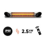 2000 W infraraudonųjų spindulių šilumos galia – su nuotolinio valdymo pultu, sumažinta šviesos spinduliuote ir 3 šildymo lygiais.