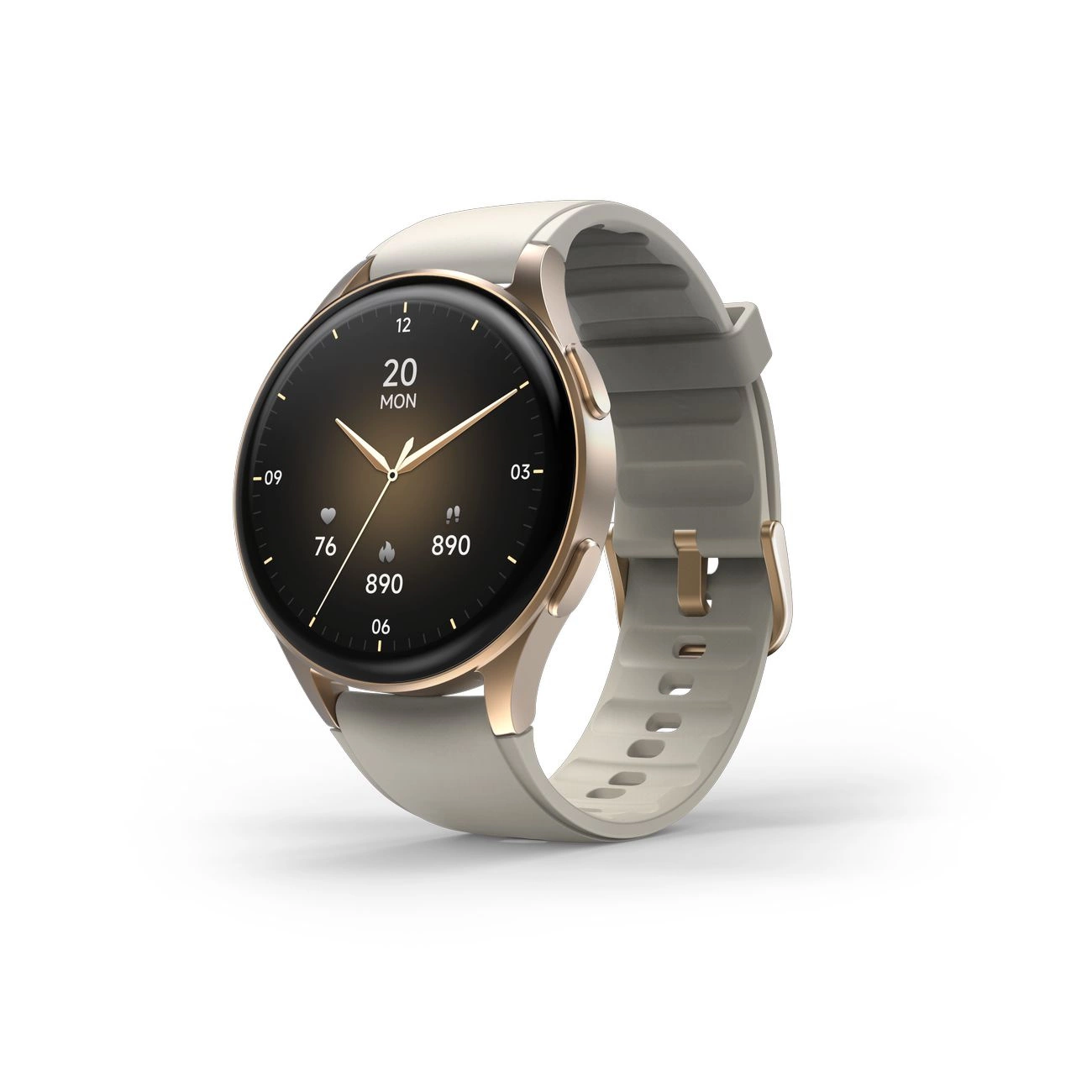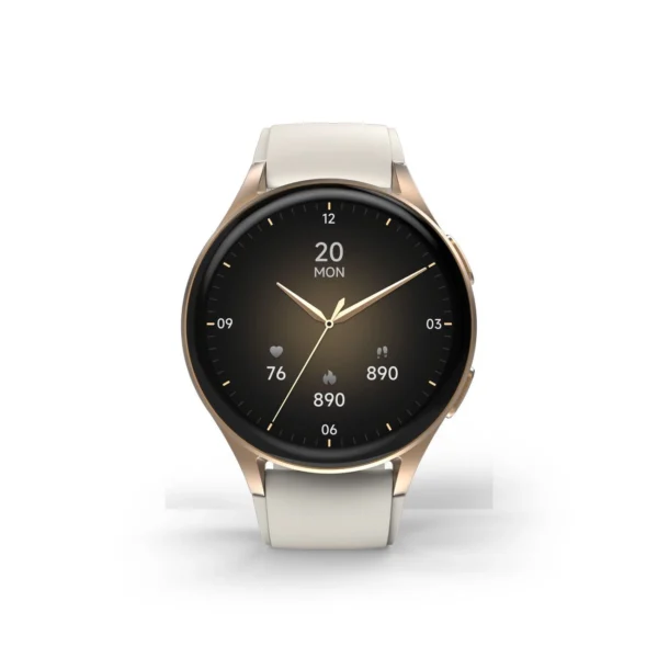 Hama 8900 GPS AMOLED išmanusis laikrodis 1.32″ su Beige silikonine apyranke – aukso spalvos