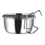 Narvo dubuo 0,15l Pagaminta iš nerūdijančio plieno, ji turi platesnį, suapvalintą kraštą, todėl gyvūnai gali juo laisvai ir saugiai naudotis. Praktiška rankena leidžia dubenį pritvirtinti prie narvo ar voljero todėl jis stabilus. Idealiai tinka paukščiams. Skersmuo: 7,5 cm Talpa: 0,15 l