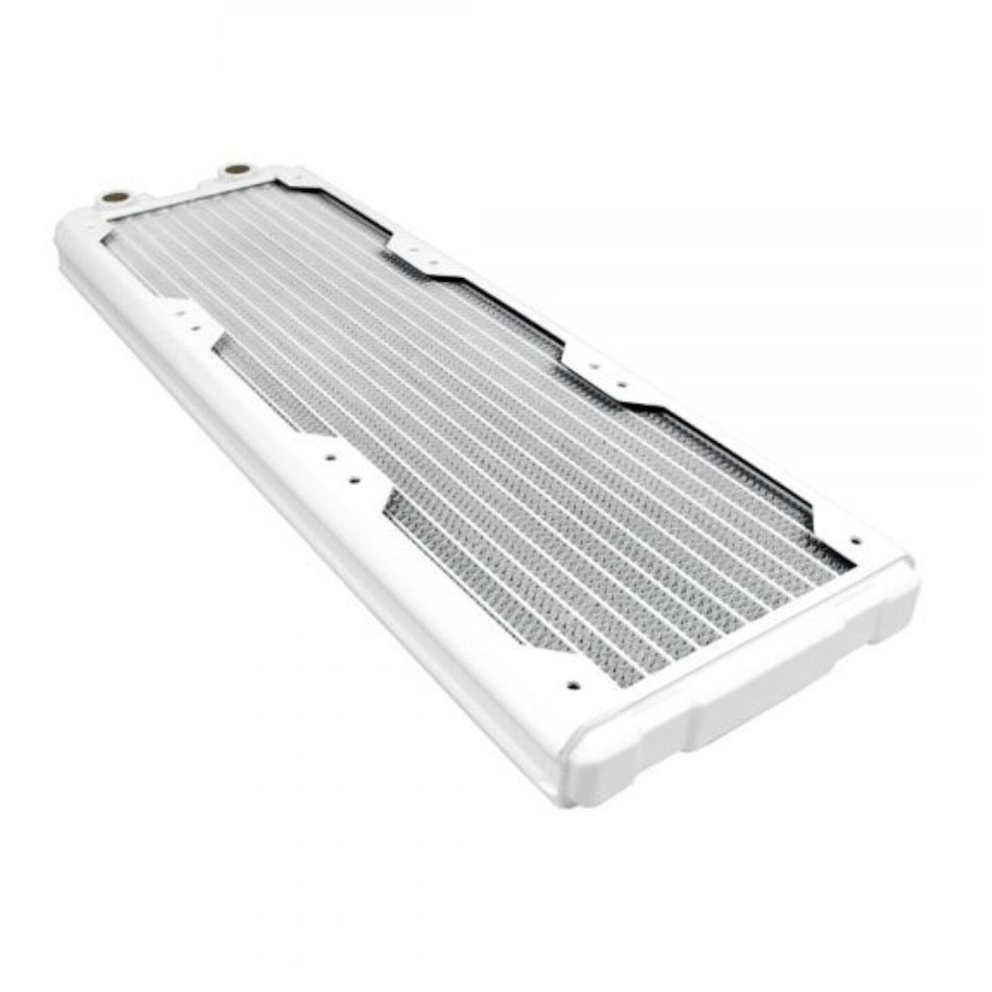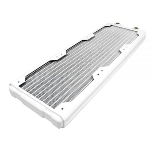 The simple black design of the radiator allows you to build a completely white gaming PC. The connection to the water cooling system is made via two G1/4-inch fittings.