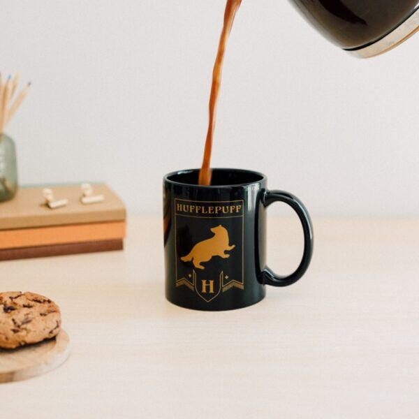 The mug features an elegant graphic of the Hufflepuff House crest, giving it a stylish, collectible feel. Its classic shape makes it perfect for both home and office, for everyday coffee, tea, or hot chocolate.