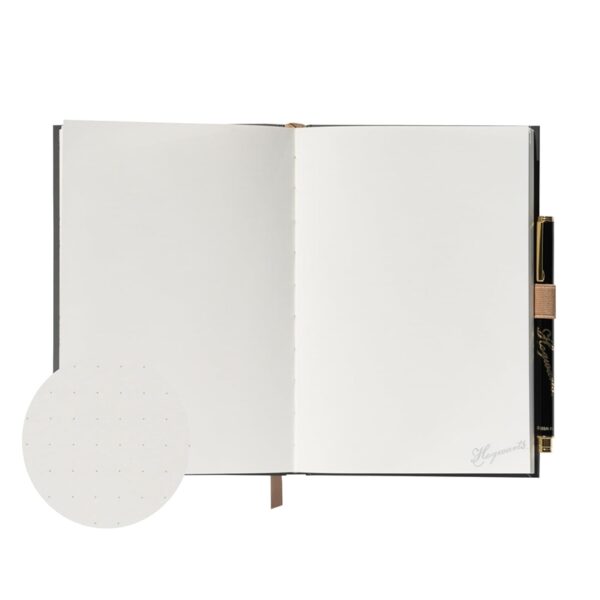 Additional practical elements, such as an elastic band, a ribbon-bookmark and an internal pocket for small notes or documents, make this notebook not only beautiful, but also extremely functional. The included Hogwarts-themed pen completes the set perfectly.
