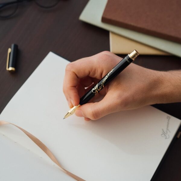 The notebook contains 96 sheets (192 pages) in A5 format, with a dotted layout and high-quality 100 gsm paper for comfortable writing without puncturing. The hard, laminated, matte cover is soft to the touch and gives the whole an elegant look, while the solid glued cover guarantees durability.