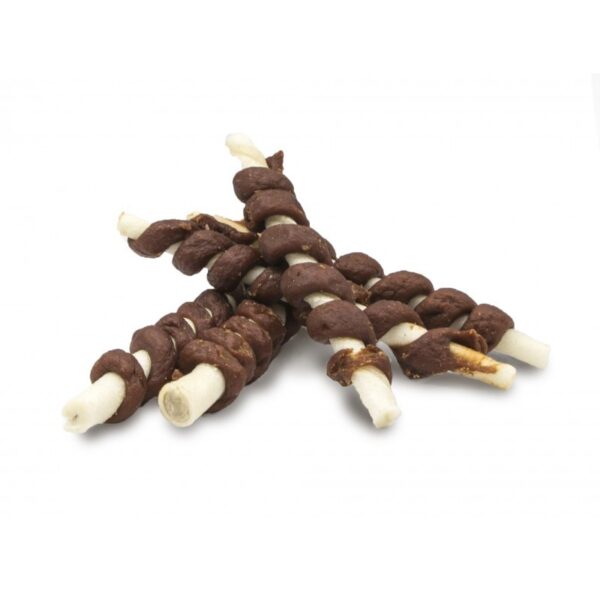 Sudėtis: ėriena (48%), jaučių žaliaminė oda (45%), krakmolas, augaliniai proteinai. Analitinės sudedamosios dalys: žali baltymai 60%, žali riebalai 2,5%, žalia ląsteliena 3%, žali pelenai 3%, drėgnis 18%.