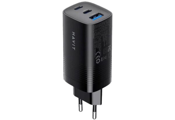 Havit UC20 – GaN 65 W trijų prievadų kelioninis įkroviklis, juodas