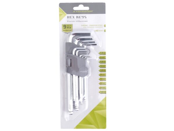 Šešiakampiai raktai, spherical, 180mm, sizes 1.5 – 10mm, 9 vnt