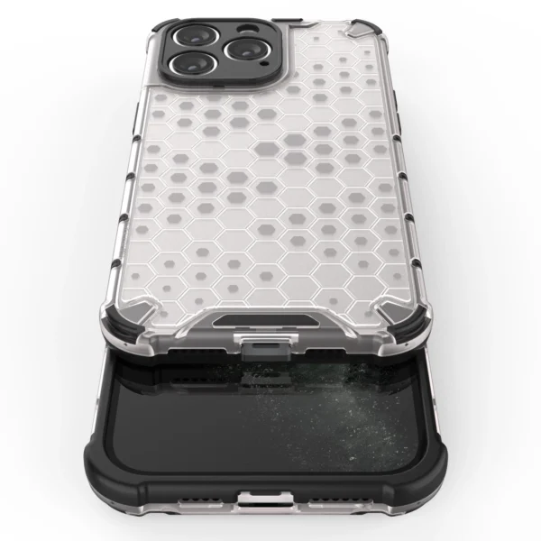Honeycomb series case it is made of a thermoplastic and durable material that is arranged in the shape of a honeycomb. The cover is adapted to the iPhone 14 Pro , perfectly protects the phone against damage due to falls or scratches (for example, by keys carried in a pocket). Raised edges around the screen and rear camera protect the phone from scratching these elements when it is placed on a flat surface. It has responsive buttons and cutouts for ports. Perfect for people who value style, quality and want to take care of their device.