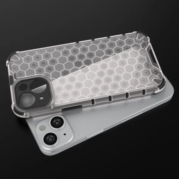 Honeycomb series case it is made of a thermoplastic and durable material that is arranged in the shape of a honeycomb. The cover is adapted to the iPhone 14 , perfectly protects the phone against damage due to falls or scratches (for example, by keys carried in a pocket). Raised edges around the screen and rear camera protect the phone from scratching these elements when it is placed on a flat surface. It has responsive buttons and cutouts for ports. Perfect for people who value style, quality and want to take care of their device.