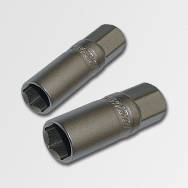 Uždegimo žvakių galvutė 1/2″ 16 mm H4016 HONITON. Techniniai duomenys: skirta uždegimo žvakėms įsukti ir išsukti, pritaikyta naudoti su 1/2″ terkšlėmis, guminis laikiklis palengvina žvakės išėmimą, pagaminta iš chromo vanadžio plieno (CrV), žvakėms: 16 mm, išorinis galvutės skersmuo: 22 mm, bendras ilgis: 65 mm.
