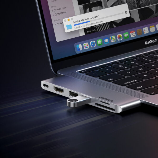 HUB Ugreen CM380 2xUSB C – HDMI/2xUSB 3.0/SD TF/USB C PD – pilkos spalvos
