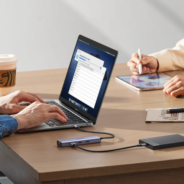 Do you want to expand the capabilities of your laptop or computer without having to purchase many different adapters? HUB Ugreen CM512 15598 is a solution that turns one USB-C port into a command center, allowing you to connect multiple devices and displays at the same time. Thanks to this, you will have access to 3 USB-A 3.0 ports, one HDMI, RJ45 and USB-C PD, which makes your daily tasks simpler and more effective.