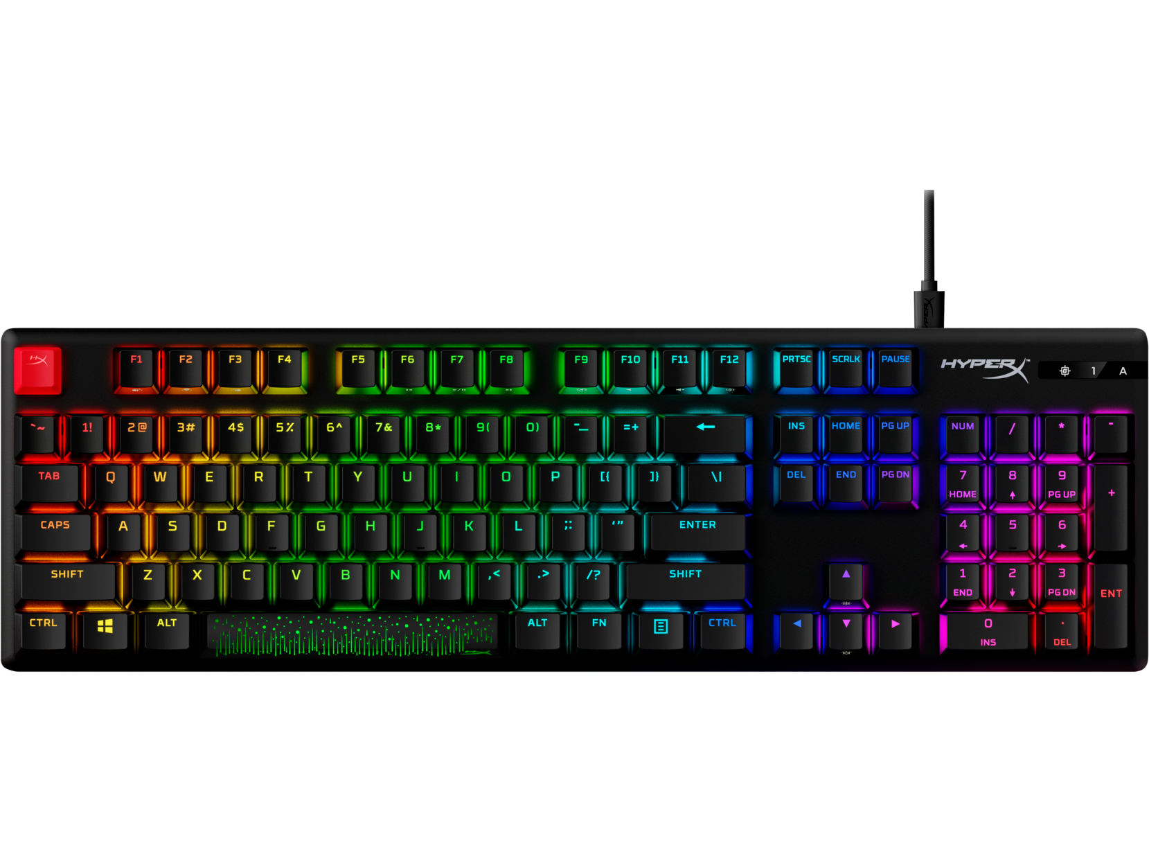 HyperX Alloy Origins PBT – US layout – HX Aqua Tactile Switches – Black (Juoda) Mechaninė Žaidimų Klaviatūra