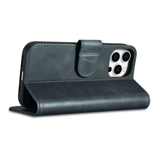 iCarer Oil Wax Wallet 2in1 Apple iPhone 14 Pro Max Leather atverčiamas Anti-RFID dėklas telefonui mėlynos spalvos (WMI14220724-BU)