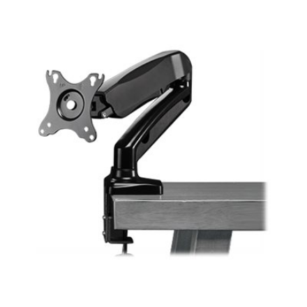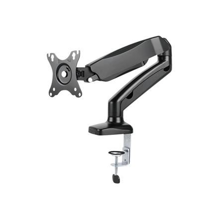 | Kitos savybės | Features • Creates space on the desktop and provides a more flexible and productive workspace • Well-engineered design slim and ergonomic • Smart Torque Adjust™ built-in spring gauge can be adjusted to suit various monitor weights • Gas spring counterbalance moves the monitor with a light touch • Cable management routes cables under the arm to reduce clutter for a clean look • Grommet and desk mount base suit most desks with adjustable clamp height • Pear-shaped VESA® slot simplifies the mounting of the monitor • Supports 75×75 und 100×100 VESA® standards. The bracket is suitable for monitors with a screen diagonal up to 27" and the VESA standards 100×100 and 75×75. It is important that the monitor should not exceed a maximum weight of 6.5 kg. The wall desk mount allows the IB-MS303-T to be attached to desks. The ingenious design ensures a uniformly distributed weight and firm hold on the desk. No matter how you like to work – the different joints can be moved in many angles. This allows the monitor to be aligned exactly as required. A full rotation of 360° is possible, just like adjusting the height, inclination or distance to the wall. |