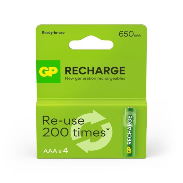 Įkraunami elementai GP RECHARGE AAA, 650mAh, 4 vnt.